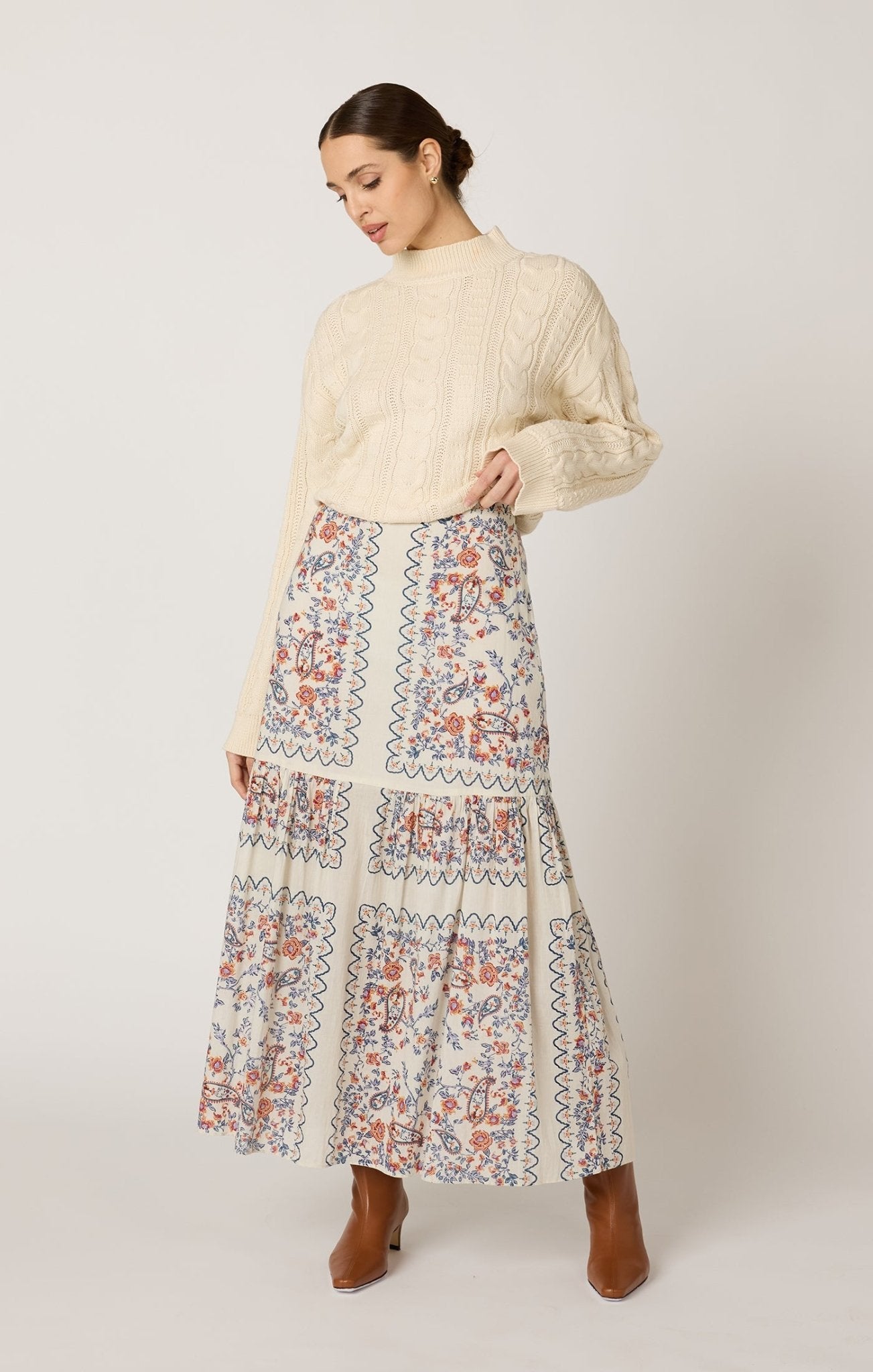 Elevate your wardrobe with the Marjorie Ankle Skirt by Cleobella. This skirt combines effortless style and comfort, featuring a flattering ankle-length cut that moves gracefully with every step. Perfect for both casual outings and refined occasions, its versatile design pairs seamlessly with your favorite tops. Experience a blend of chic elegance and everyday wearability that makes this skirt a must-have addition to your collection.